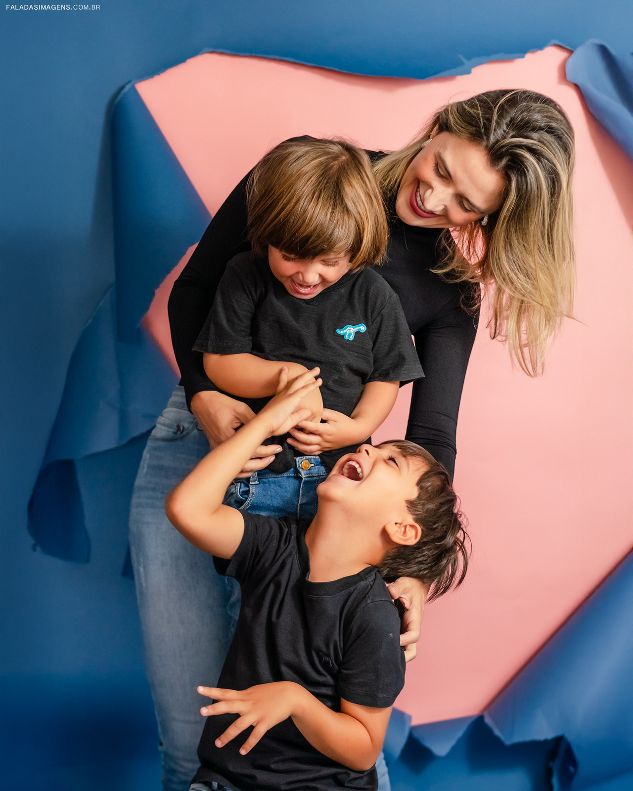 A decisão entre realizar o ensaio em um estúdio fotográfico ou em um ambiente externo depende do estilo e das preferências da família.