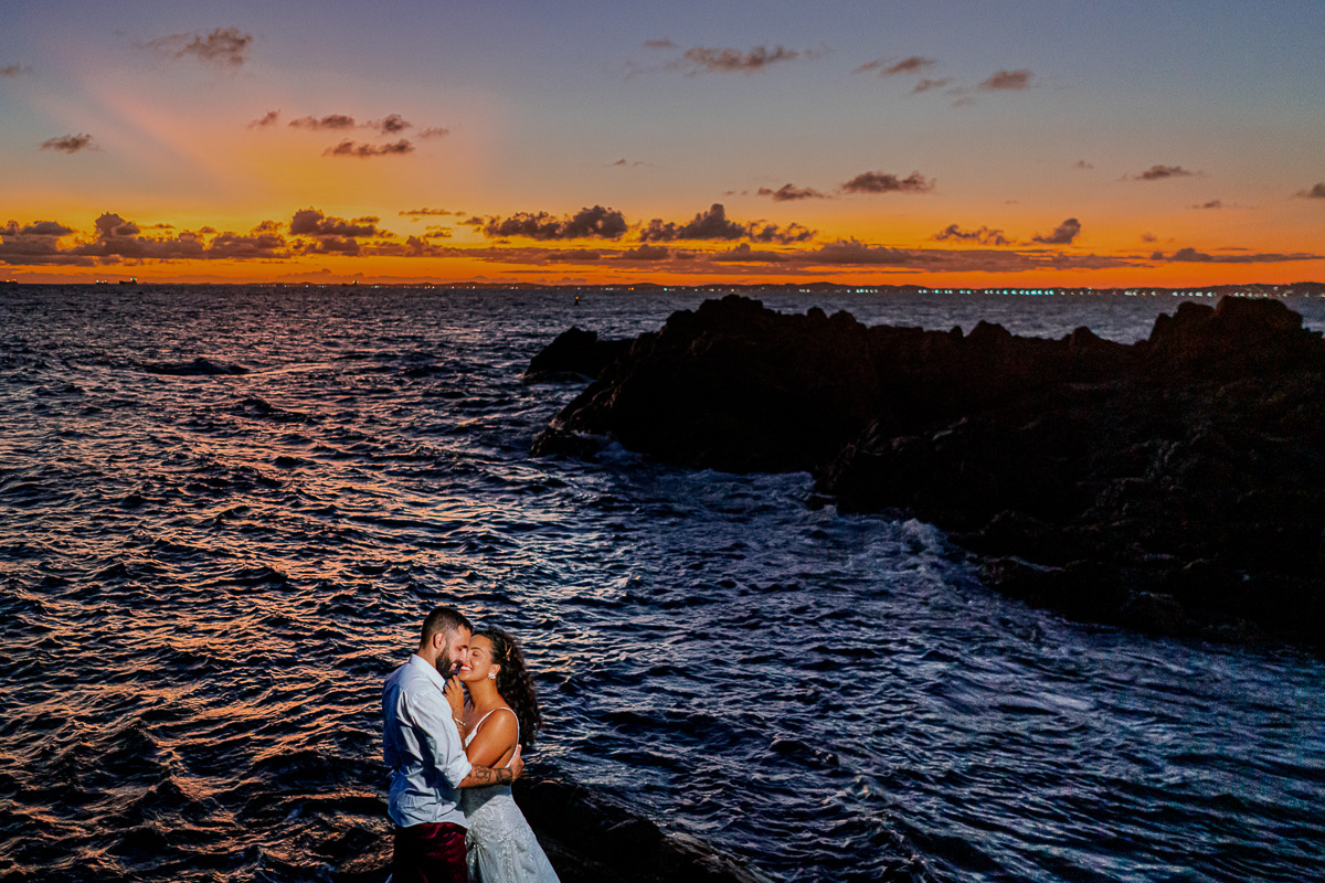 O ensaio pós-casamento é uma sessão fotográfica feita logo após a cerimônia, com os noivos ainda vestidos de noiva e noivo, muitas vezes com o pôr do sol de pano de fundo ou já durante o início da festa.