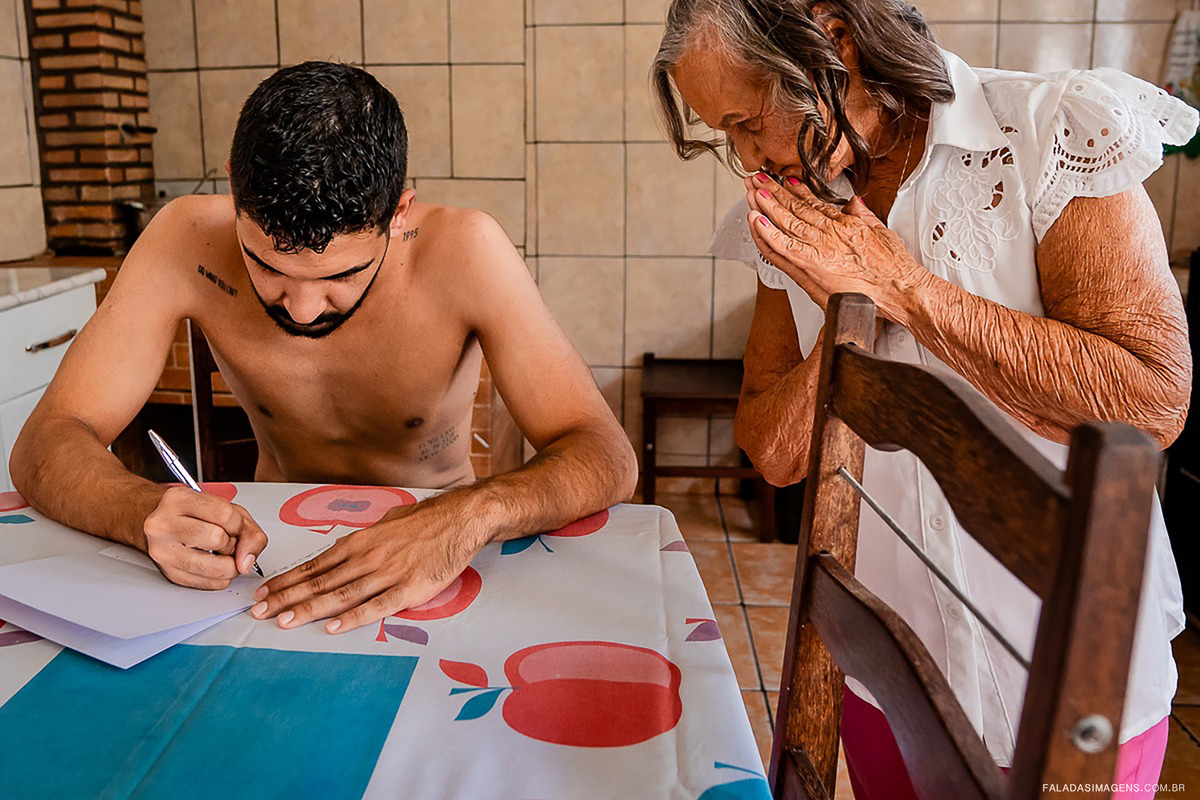 A preparação revela muito do que está por vir. O silêncio no quarto, o carinho das amigas, a concentração do noivo colocando o relógio. No casamento da Isa e do Marlon, em João Monlevade, foi ali, no meio da preparação, que vivemos alguns dos momentos mais marcantes: o abraço apertado da mãe na filha e a reação emocionada da avó enquanto ele escrevia os votos.