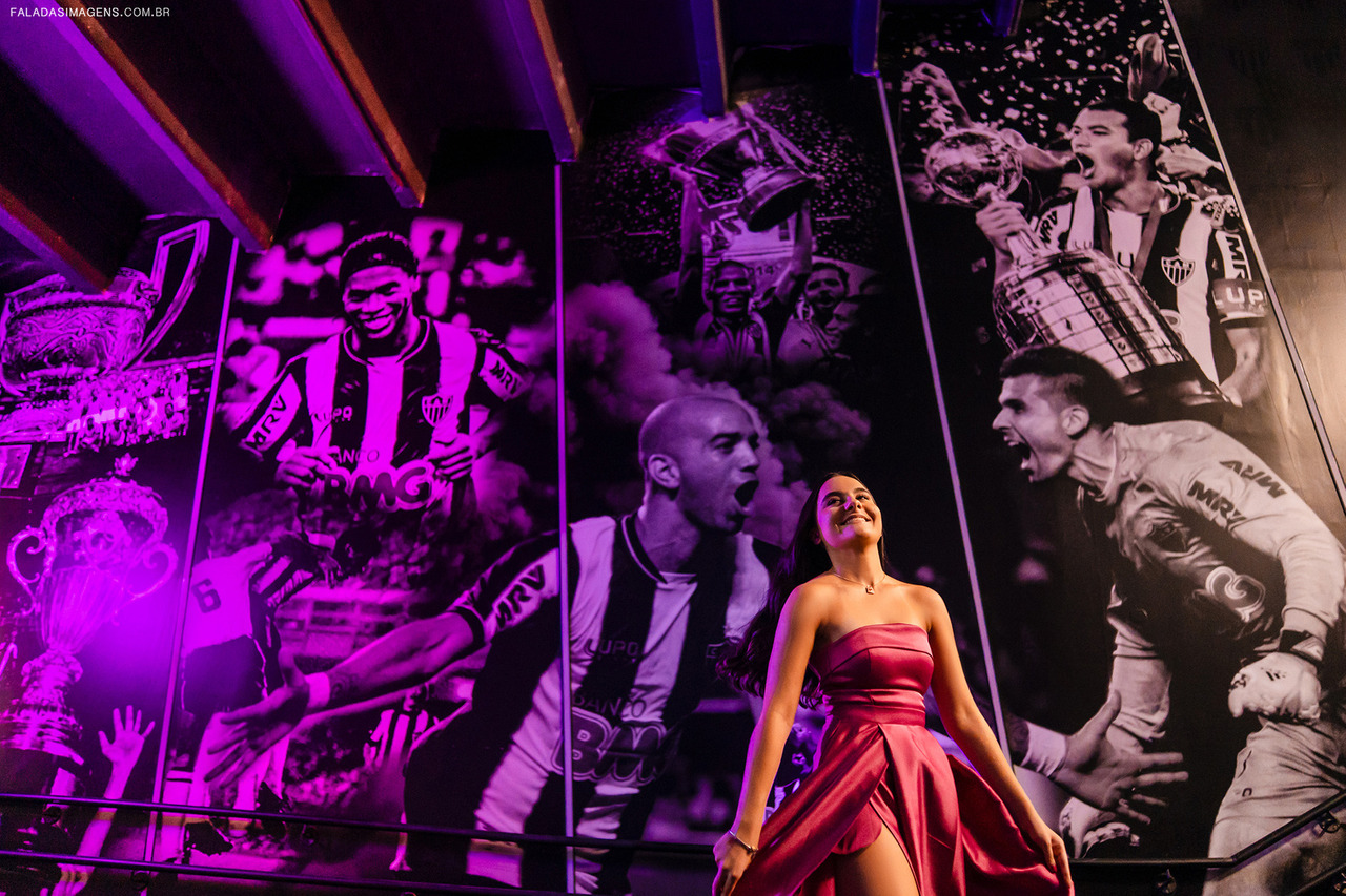 A Arena MRV combina muito com debutantes que são apaixonadas por esportes e desejam um ensaio fora do comum. Além disso, fotos dentro do estádio podem transmitir toda a emoção e energia do local.